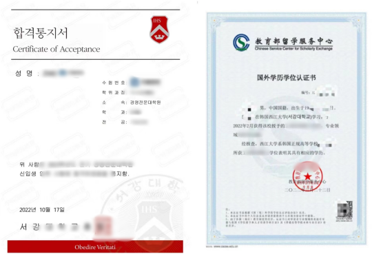 西江大学本科录取通知书样本 中留服国外学历学位认证书样本